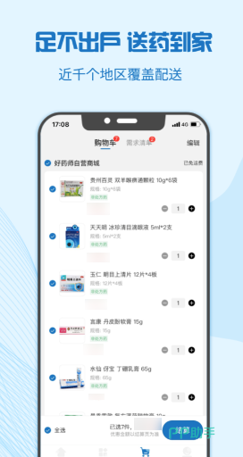 软件覆盖了国内大小城市,在线上购买之后可以很快配送到家。同一种药品可以选择不同的品牌和数量,如果遇到暂时缺货的药品可以先登记,补货之后会优先通知我们。