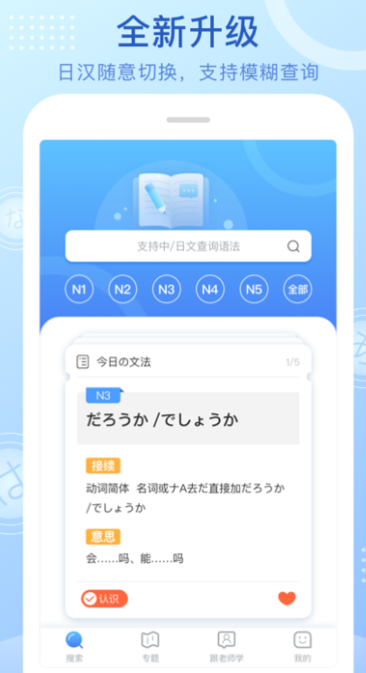 大家在平台中通过趣味结合的方式掌握日语词汇,很多日语学习工具等着大家体验。平台中还有免费的课程等着大家学习,就算是零基础也可以在平台中掌握好日语五十音,打好日语基础。