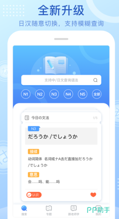 很多零基础的朋友们想要学习日语可能不知道先干什么,平台中为大家提供了基础的日语学习。针对大家的语法不足,平台有很详细的语法解析,对于一些看不懂的日语平台可以进行翻译,大家掌握日语更为轻松。