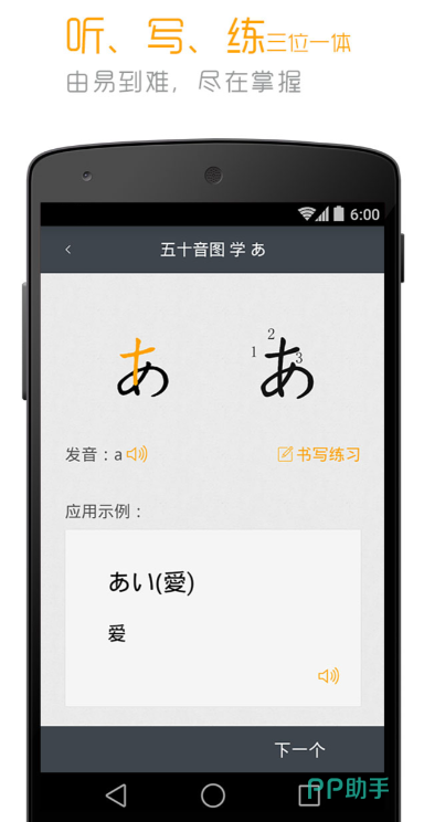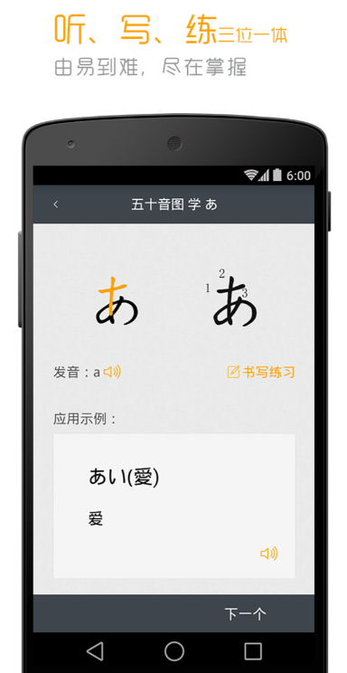 大家可以在平台中听到很标准的发音,这都是有专业的来时录制的。大家在学习五十音的时候,可以同步听、写、练,一边听发音一边练习日语笔画。另外平台中有很多学习课程,大家可以对口语做针对性训练。