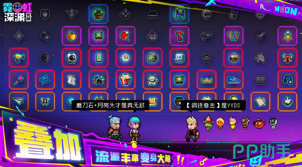霓虹深渊是款具有像素风格的横版冒险类游戏,像素风格和赛博朋克背景的巧妙结合让人耳目一新,满屏特效的画面让这款格斗游戏更具观赏性,可以无限叠加buff的设定让游戏玩起来更加爽快,丰富多样的战斗流派也是本作的魅力所在,随机刷新的增益道具和打怪掉装的机制也吸引了大量粉丝,相信这里别具特色的战斗游戏会让你爱不释手。