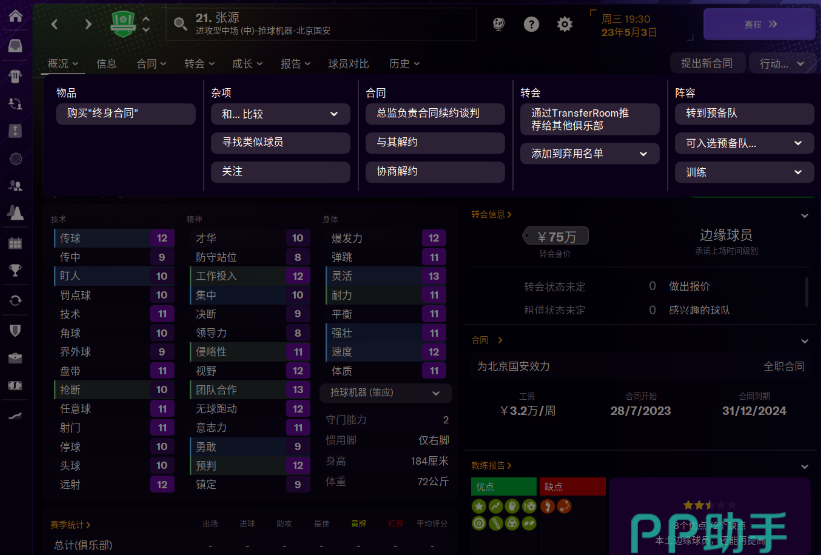 所谓的“妖人”就是比较有潜力的人,这款游戏不光有着众多的真实球员数据,也有很多随机生成的新星球员。这些队员一般都是在二队,年龄在20岁以下,这些角色的潜力值一般可以达到三颗星以上。如果你是玩中超联赛的话,三星评价的球员其实已经很不错了,毕竟这一联赛水平比较拉胯。但如果玩那种影响力比较高的赛区,那么潜力四星以上那才叫“妖人”。