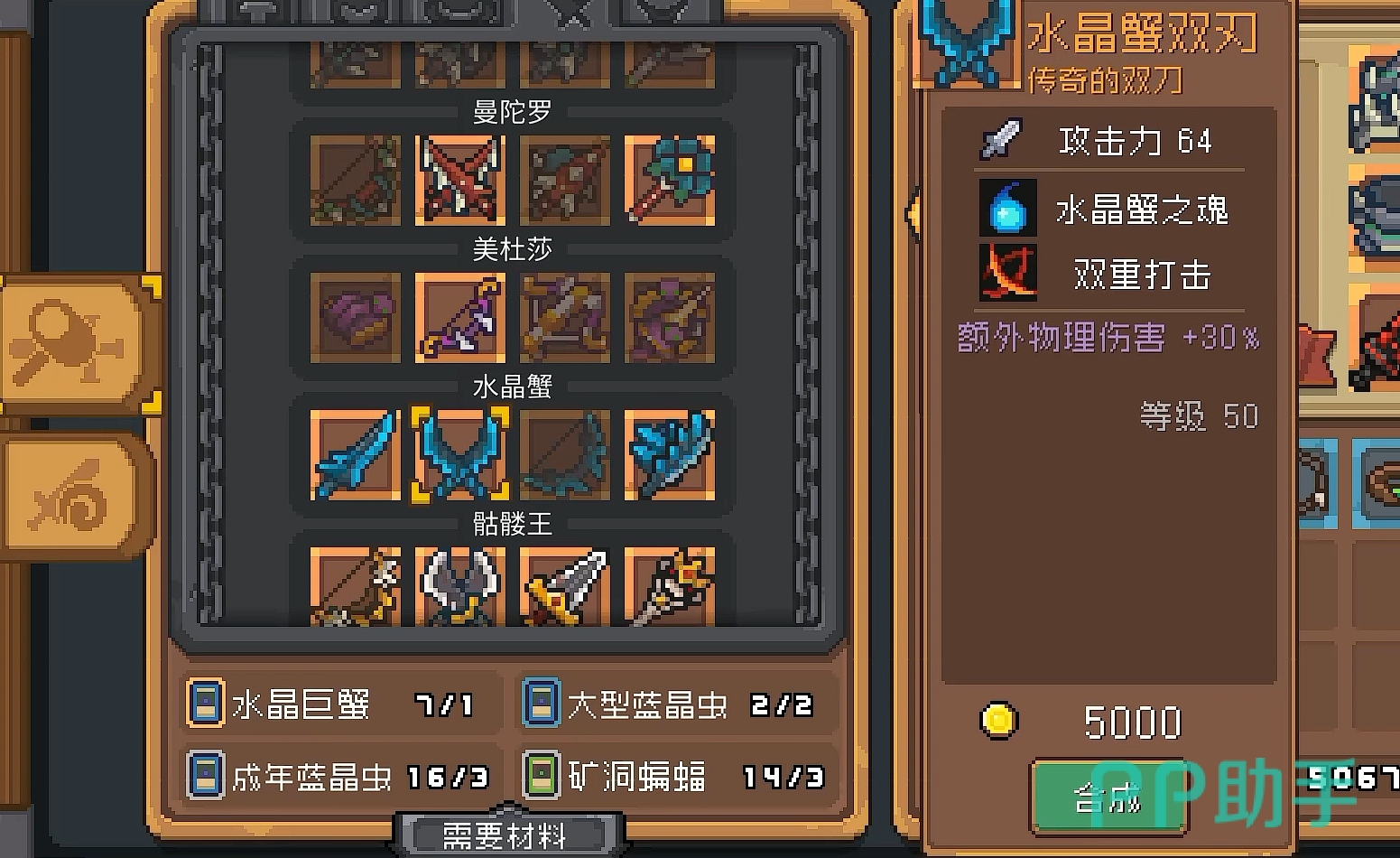 当然,除了对战玩法之外,这些卡片最重要的用途还是用于合成我们的boss武器套装。我们收集到一定数量的卡片之后,就可以前往我们的铁匠处进行boss武器的打造。每一个boss武器套装都有专属于自己的羁绊能力,大幅度加强玩家们的属性。