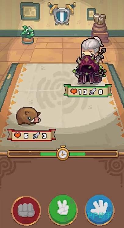 在这里,玩家们可以消耗一定的卡券来购买卡牌。之后,玩家们便可以通过卡片与酒馆等其他NPC角色进行对战,取得胜利之后,能拿到更加稀有的卡片。整体玩法流程也比较简单,就是在角色基本卡片属性比大小的同时,另外靠剪刀石头布来猜拳胜利。
