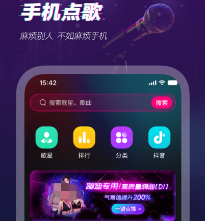 这是KTV唱歌神器,通过手机扫码进行点歌,作为免费的平台,其中有超多的玩法,可以点歌,可以唱歌,另外还能互动,具有电视互动大屏齐全的功能。