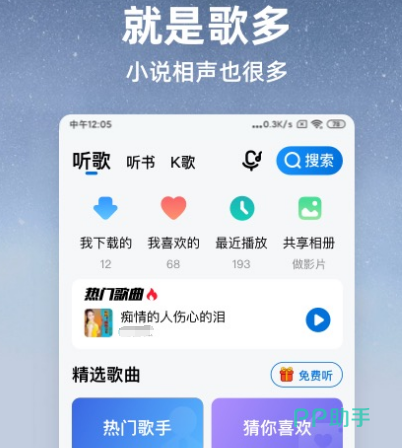 酷狗的升级版本自大歌多,专门为中老年人所设计,每个字迹都能清楚的看到,让用户看得清楚,听得开心。其中有经典老歌、广场舞、红歌、小品、相声等等。