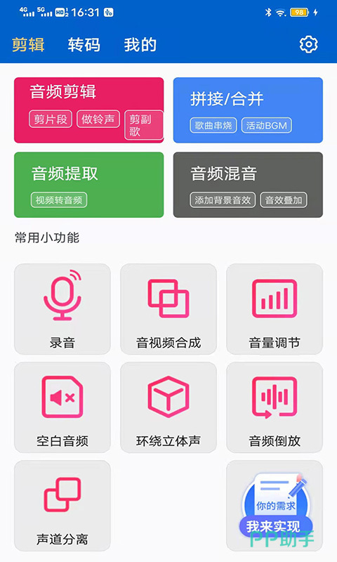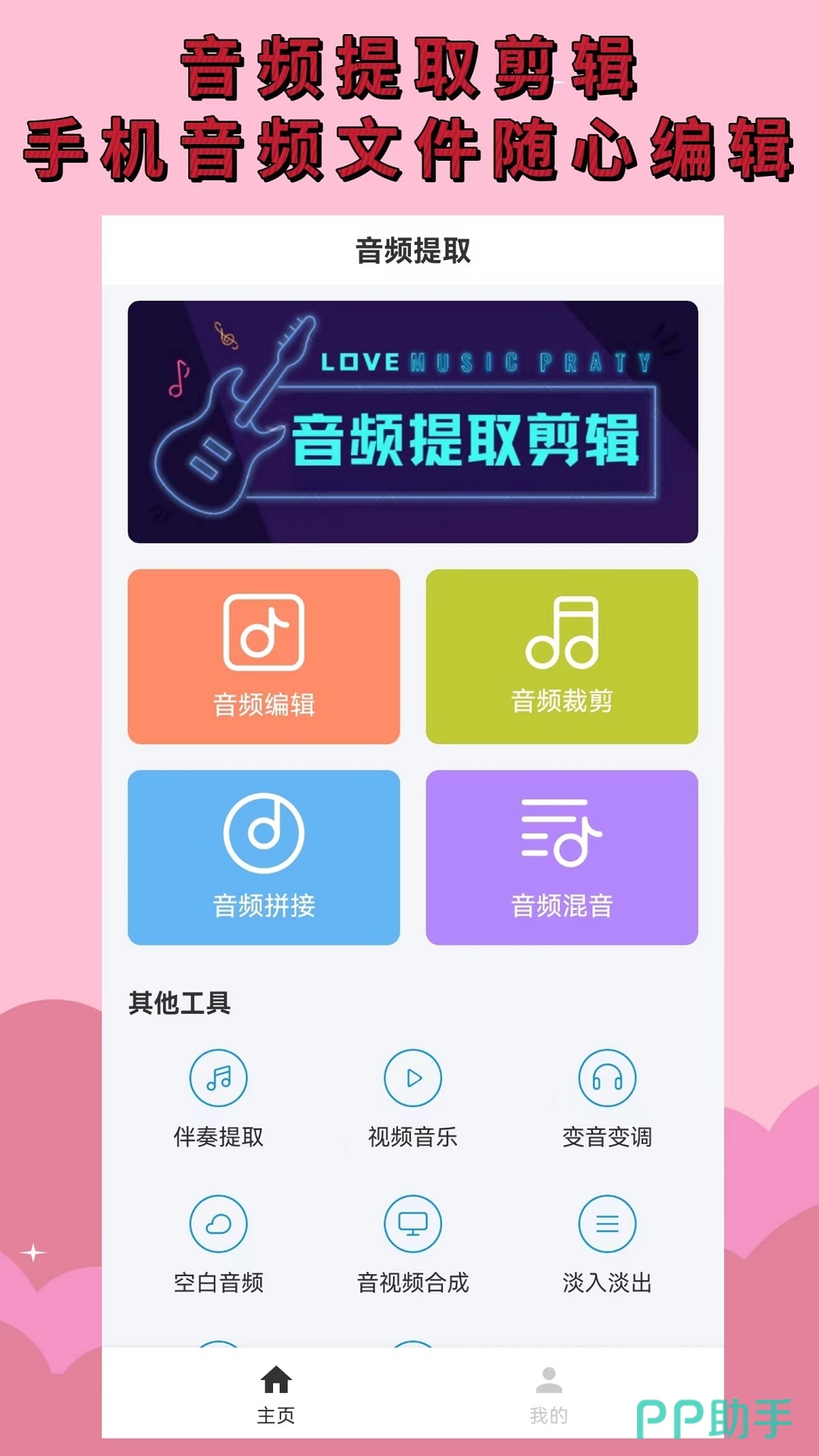 这个软件上的剪辑功能上不仅能够对你拍摄的音频处理,也能对音频内容进行提取。在软件的首页就能看到这个软件能对音频处理的内容,在音频的剪辑上能够对声音逐帧进行处理,这样的好处是绝对能消除噪音。