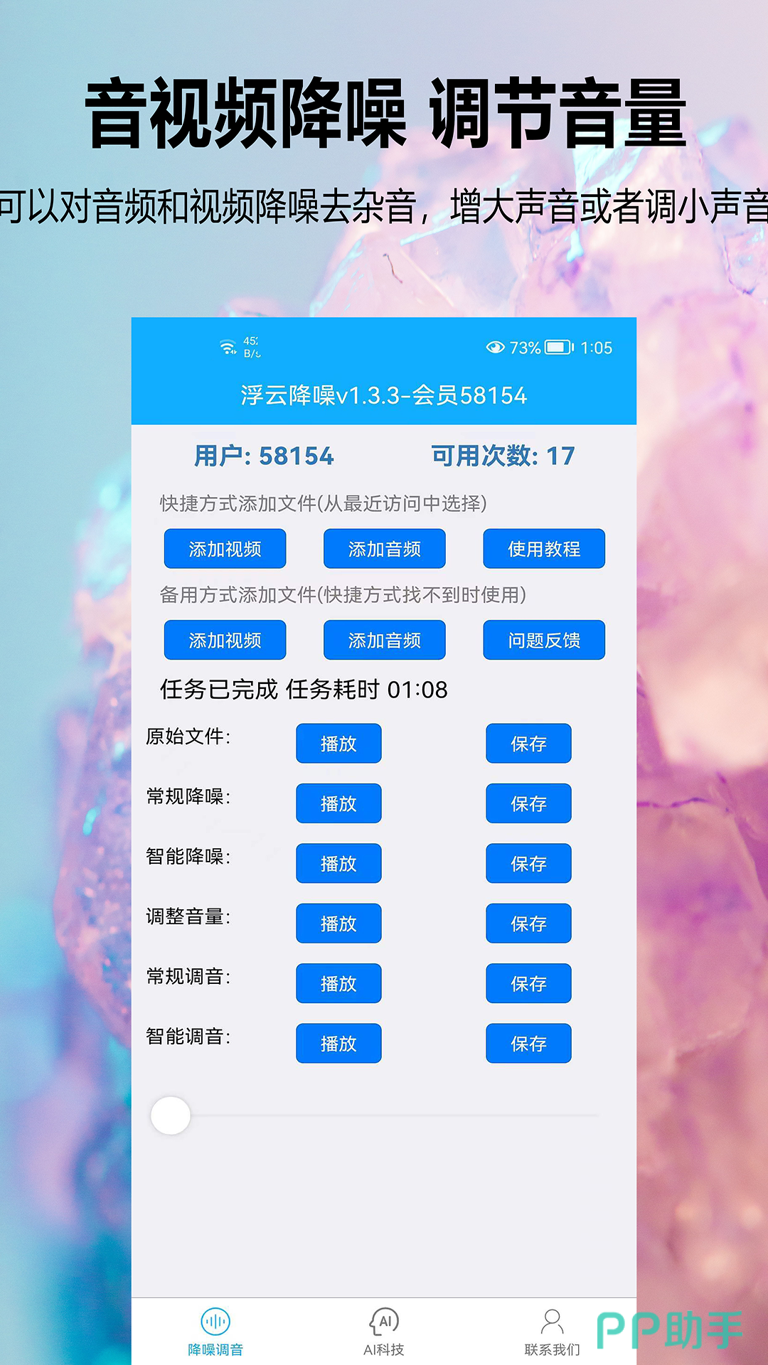 如果说在室外的时候如果杂音太多可能会对录制的音频声音有所影响,不过有了这个软件之后能够对音频或者是视频进行降噪处理,这样录制起来会方便快捷很多。