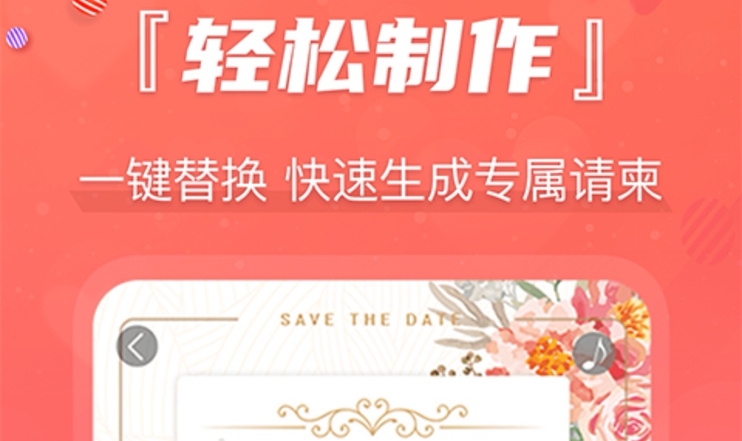 简单的操作、超高的效率,本软件只需要一键就能制作出一份份精美的请柬供小伙伴们来使用,轻松制作后即可快速分享给宾客,除了婚礼请柬外,其它喜事也可以使用哦!