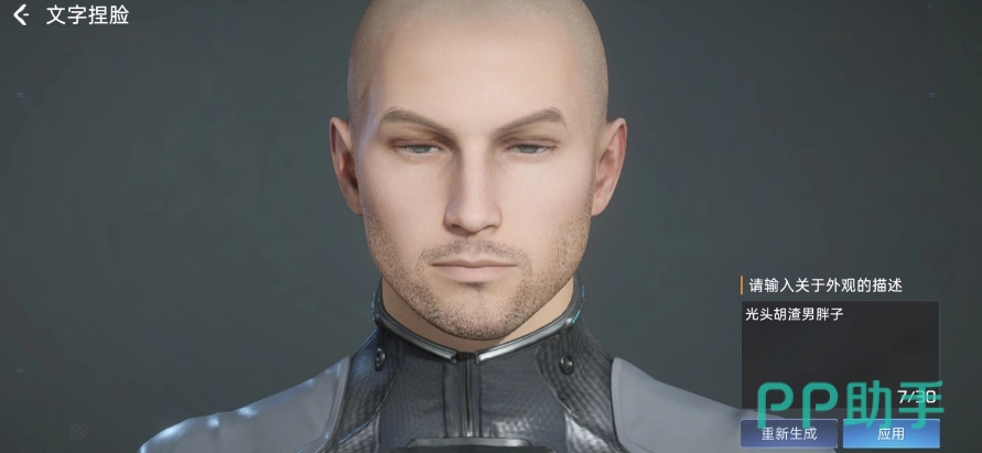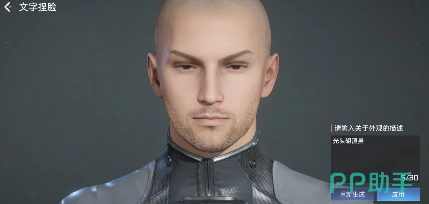 那么在这里小编就给大家介绍一些比较实用的关键词,第一个就是“光头胡渣男”,这个关键词非常的直白明了,所以当你输入并点击生成之后,它可以完美的捏出一张符合该特征的脸。