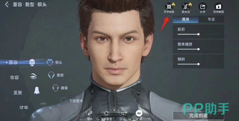 直接点击“下一步”后来到新的界面,之后在右上角点击那个“文字捏脸”功能,即可开始使用它,可以看到该功能和“装扮站”都带有火苗图标,看样子也是十分火爆。
