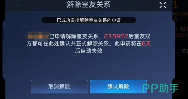 点击“申请解除”后,你的室友就会受到解除关系的相关申请,不过申请发出并不代表着同居关系就已经解除了,想要正式解除的话还需要等待24小时然后再按下“确认解除”的选项,当然,你也完全不用担心对方不同意而无法解除关系,因为24小时到了之后双方任意一人点击确认都是可以将其解除的。