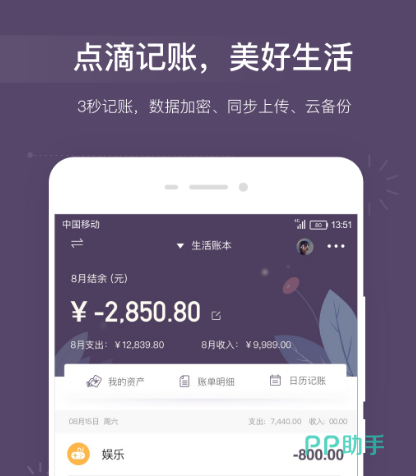 这是一个非常好用的记账软件,提供智能快捷记账。在记账的时候只需要三秒的时间就能够完成记账,还提供数据加密以及同步上传云备份等功能,如果想要让自己每个月不再成为月光族,通过软件来完成记账就是非常不错的选择。