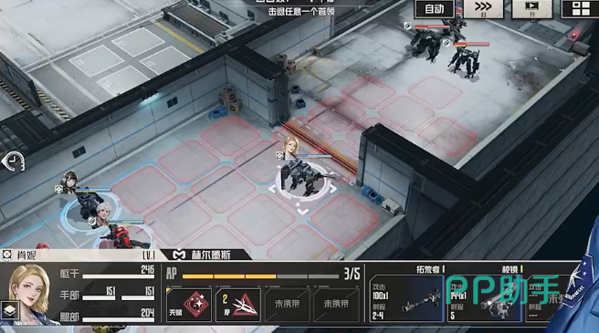 肖妮,武器是电磁炮,距离越远伤害越高。被动能斜着打很有特色,aoe尚可,在一些站位很狭隘的地形中可以最大程度的发挥这个角色价值。不过缺点也很明显,电磁炮的重量大,而且输出有空白期。