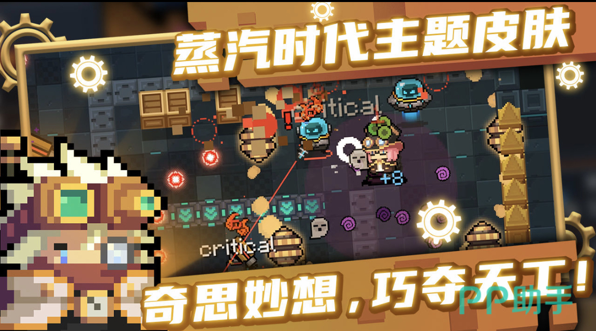 大量怪物横行的时代,玩家需要打败怪兽守护维护和平的魔法石,小编会想到元气骑士。显而易见,玩家可以选择皮套王子这个角色进行攻打怪兽,也可以换上蒸汽时代的主题皮肤,毕竟人靠衣装嘛,角色也会更加有气势。除此之外,玩家还可以选择不同的机甲坐骑进行战斗,总而言之,它是一款充满乐趣的像素风格打怪兽的游戏哈。