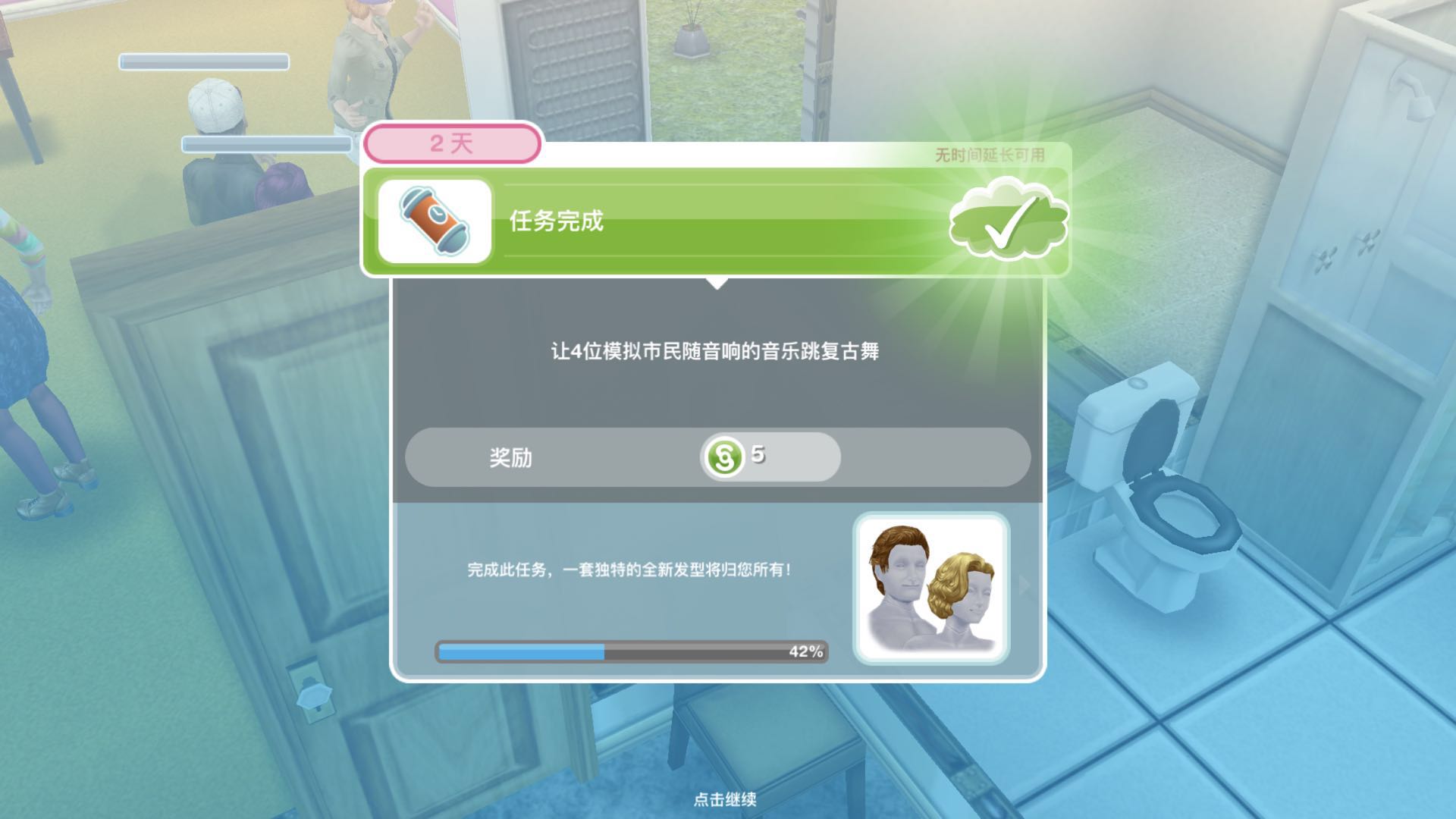 由于任务要求四位市民一起跟着音乐跳舞,所以分三次切换到其他市民,每次一个,再点击音响,出现加入选项,点击加入,这时候四个市民就一起斗舞了。这个任务就顺利完成了。