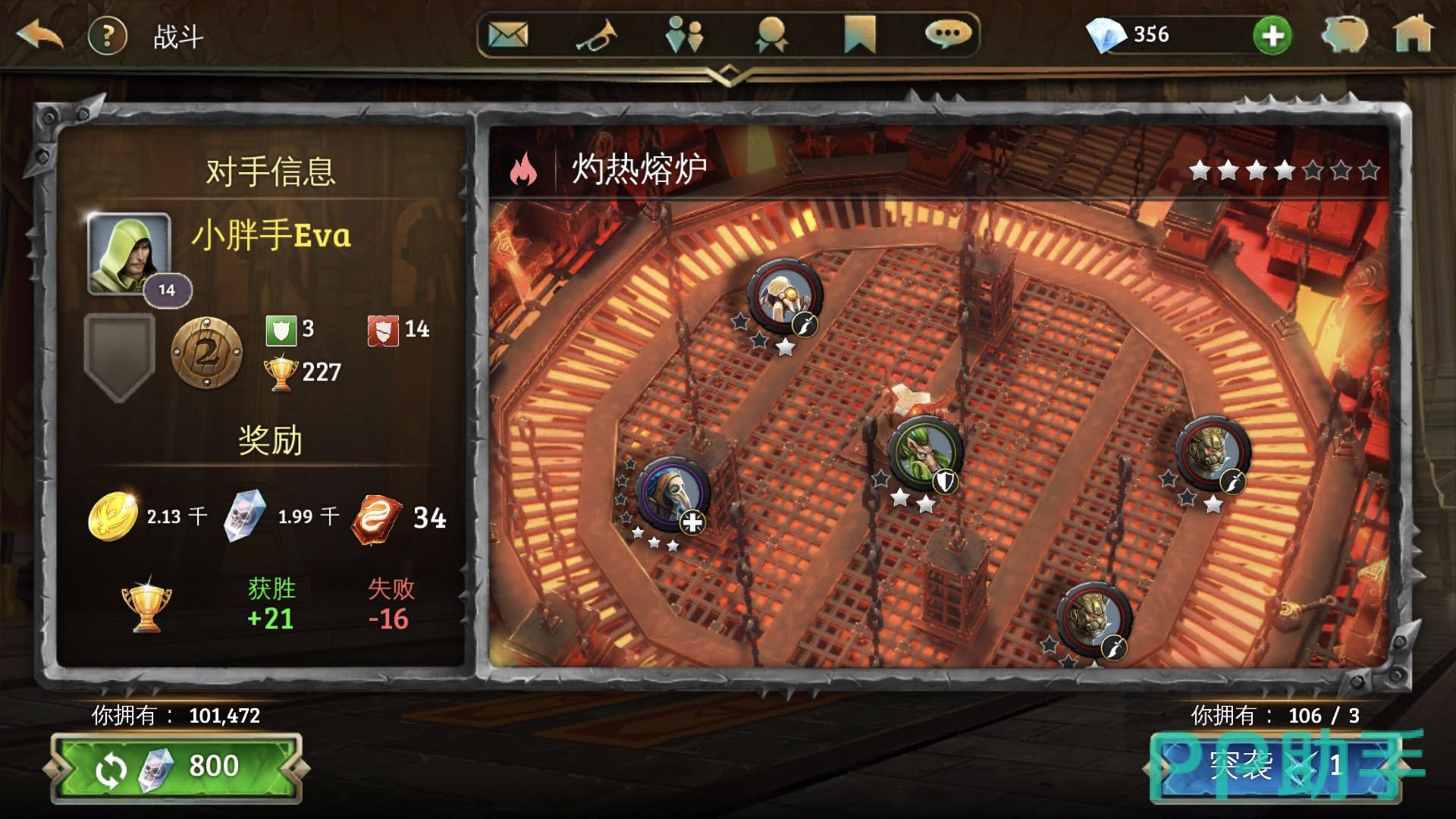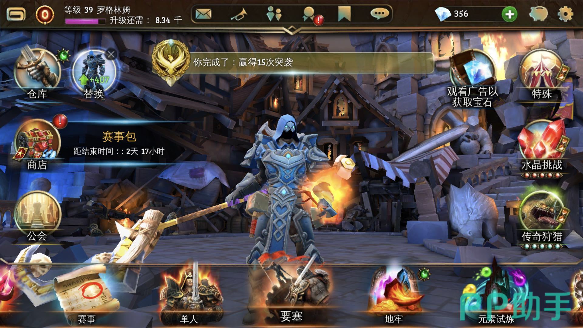 2.到了游戏后期一定要组件好5个元素属性的套装,随着玩家要塞攻击次数增多我们的段位也在提高,那么对方的要塞也会越来越强。利用好元素相克是通过的一个手段。