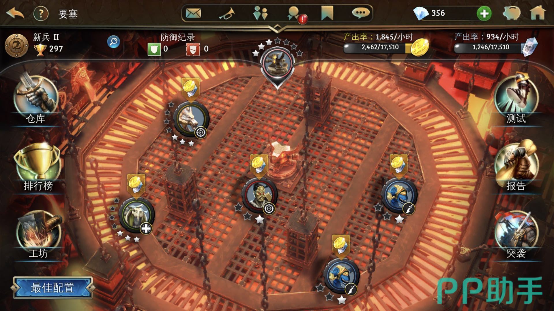 2.进入要塞可以看到右边有个突袭,这就是攻击要塞的入口了,左边的工坊是我们升级工坊的菜单图标。