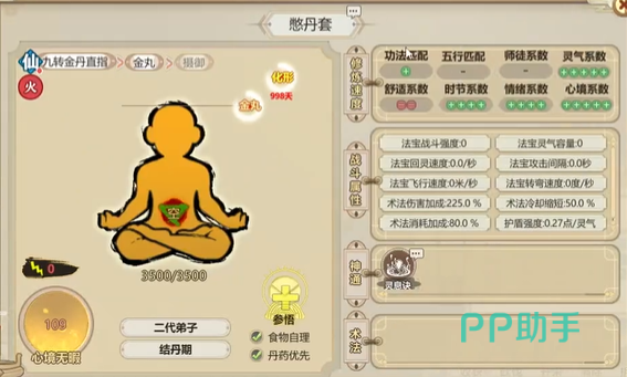 想要制作出憋丹套需要我们着重修炼角色的潜力以及速度,所以在进行元神寄托的时候就要选择可以加修炼速度的技巧之悟和加潜力的秘籍,比如玄天真功法、九转功法。初期可以成型的憋丹套构筑方法比较简单,角色6点潜力就能够增加一倍的憋气效率。