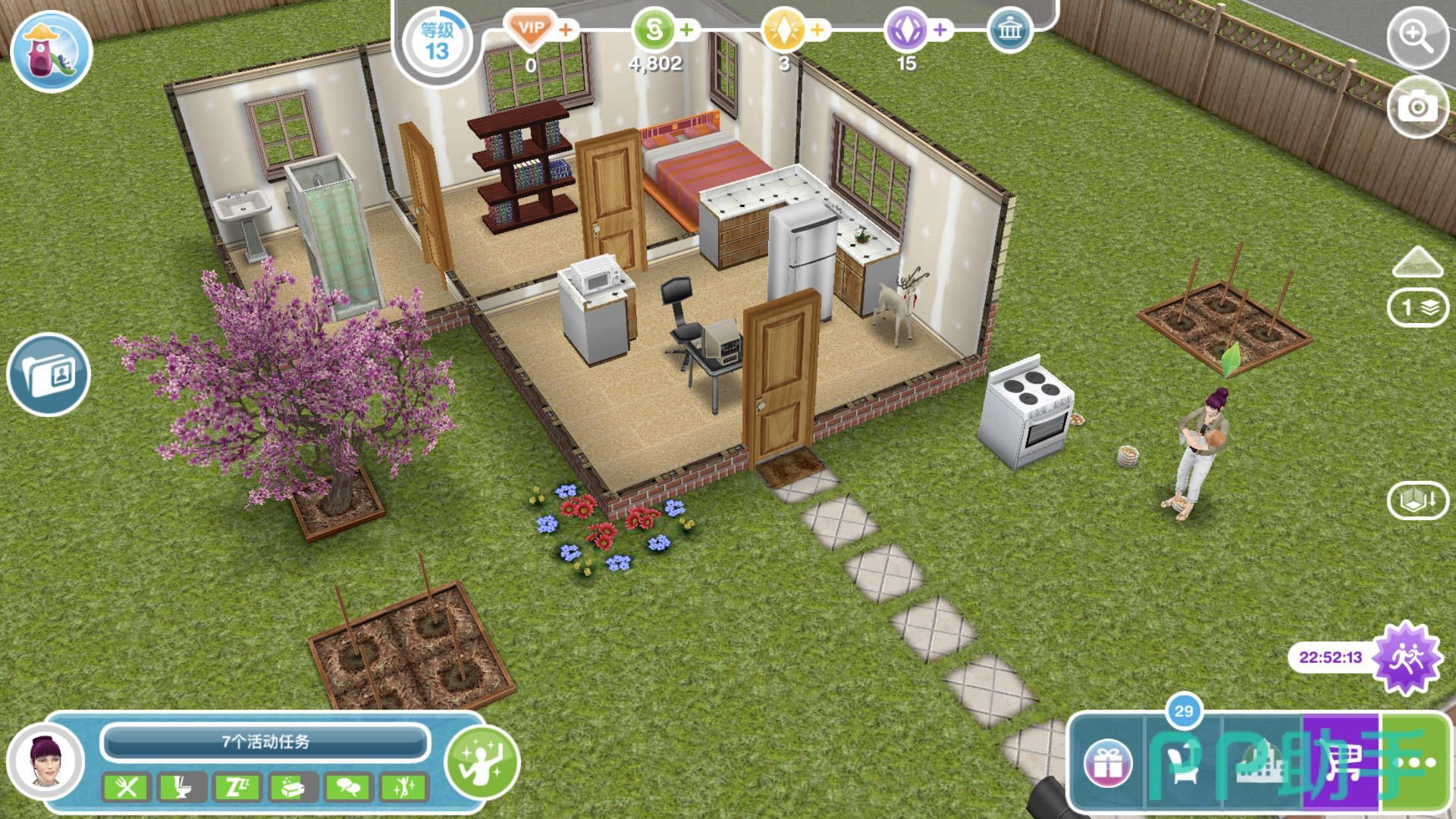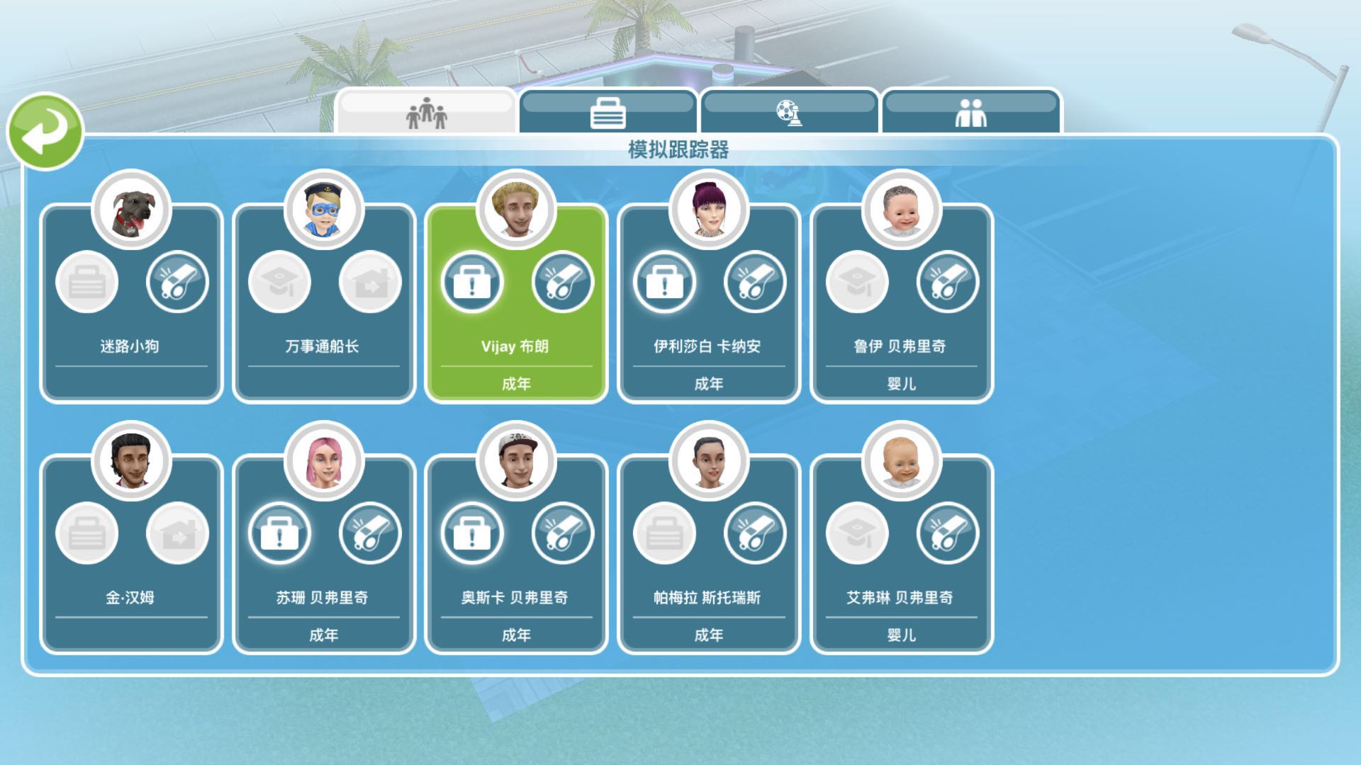 出门方法:先在人物资料界面,点击一个在家的市民,切换到他的房子,然后再选中一位即将来摆放的对象,同样用哨子呼唤他过来即可。