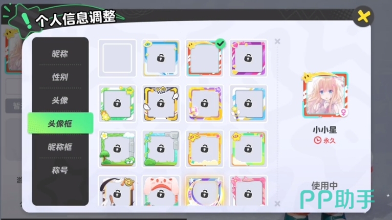 除了能够更换自己的头像图片以外,你还可以更换自己的头像框,相比游戏中比较少的自带头像,这个头像框的种类会丰富的多,并且它的风格也非常多元化,无论想要霸气风,清新风还是可爱风都可以满足。