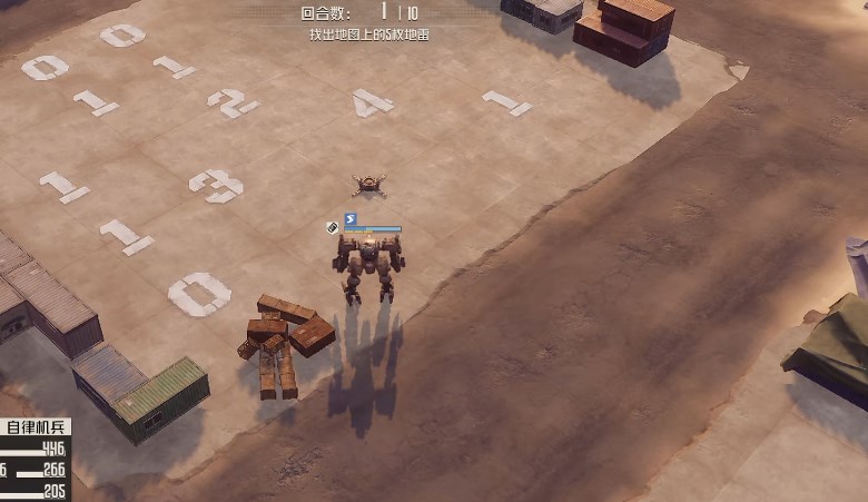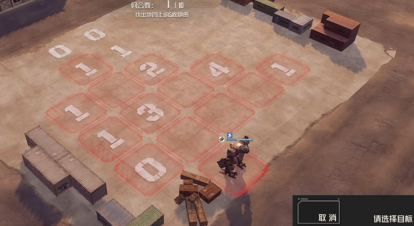 以合作意向这个图为例,需要找到地图上的5枚地雷,调整方向然后标记地格就可以了,顺利标记5个地雷就会提示通关,有时候距离不够可以向前移动一格,但是要注意别移动到地雷上面去了。