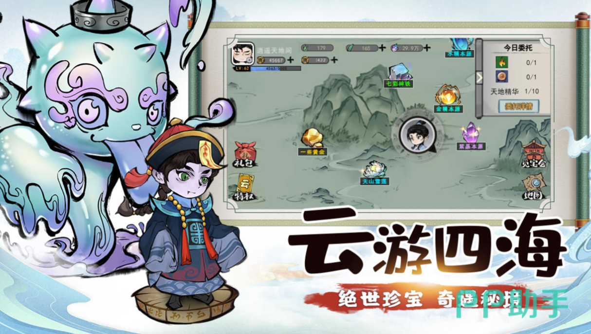 山海图是款具有国风水墨元素的休闲挂机类游戏,层次分明的地图和水墨风的场景令人过目难忘,你将化身洪荒时代的普通人与各种异兽为伍,在危机四伏的山海经世界体验挣扎求生的感觉。这款国风味十足的山海经游戏玩法非常佛系,张弛有度的画面和优哉游哉的玩法令人放松心情,庞大的山海经地图期待着玩家们随意探索。