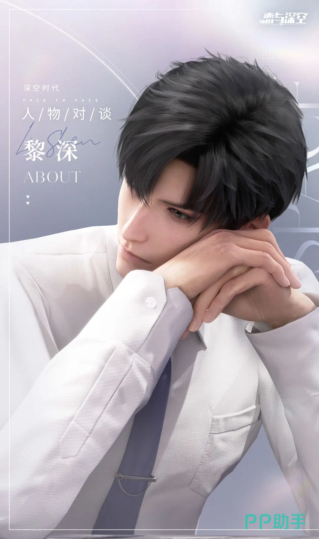 最后一个男主就是黎深了,他是游戏当中唯一一个黑发的男主了,从立绘上看是十分高冷的,可能是跟他的职业有关系,设定上他是一个心脏外科的医生,外貌和实力都是十分优越的一个了,目前是27岁,性格和外形相符,是比较冷冰冰的哪一类型,Evol是冰,技能具有冻结控制相关的效果。