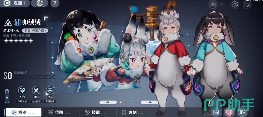 第四个就为大家推荐卯绒绒,这个角色是带有可爱外观超高输出的角色,在游戏中它造成的输出可以说是最高的,以为是带有元素输出效果的,所以在游戏中其实使用的时候是可以带一定控制效果来用的,大部分玩家也会叫这个角色为双兔,因为抽卡的时候大家抽到的是一张卡,但是上阵是会有两只兔子出现的,前期抽到的概率不大,因为这个角色的强度很高所以也被一部分玩家给奉为真神,前期要是大家运气好抽到的话基本过副本是没有什么难度的。