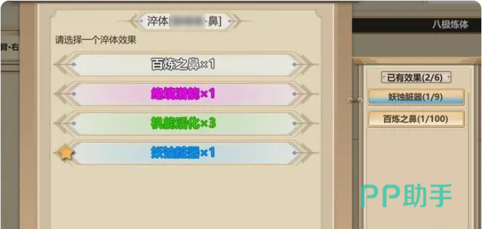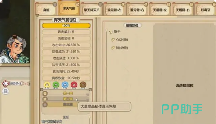 优先开启的是混元臂以及天盾腿,两个基础秘体,所以要先将秘体对应的肌肉进行淬炼,混元臂能淬炼四个前腿的肌肉,开始的时候可以用,生机精华,生命本源,或者造化命元的其中一个就可以,这些精华是可以通过吃药来获得的,需要是药台制作的弹药,内门的丹药不行。