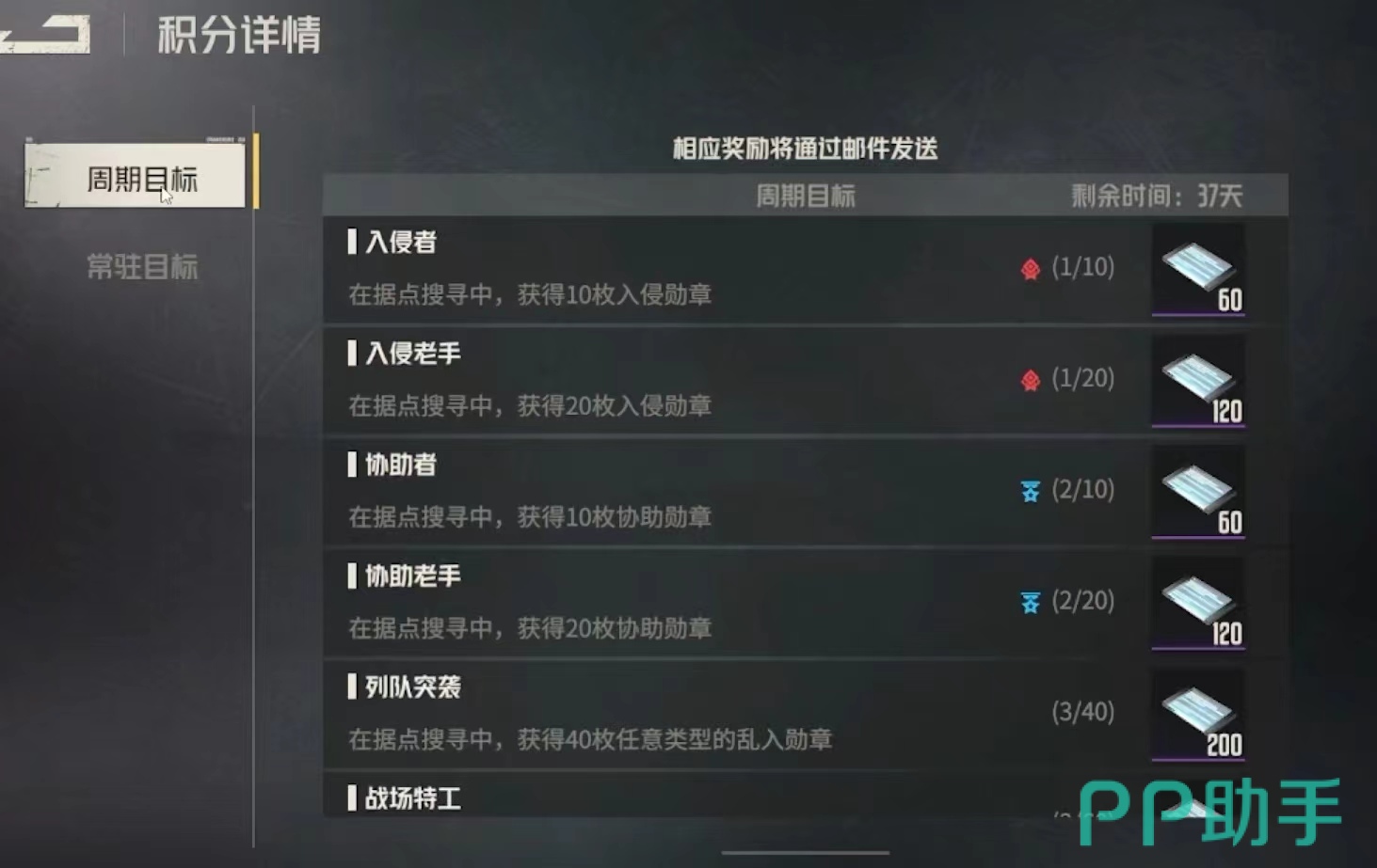 玩家进入乱斗模式中会看到有一个周期目标和一个常驻目标,在这些目标中会有很多的任务出现,玩家在游戏中做完这些小任务都会获得相应的奖励,当玩家完成每一场战斗的的任务的时候还会获得勋章,如果玩家想要在游戏中快速的升级,那么一定要尽量的完成这些任务,对游戏升级是有很多帮助的。