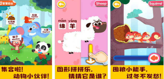 孩子非常喜欢动物,但是在日常生活中能够见到的动物种类非常少,很多家长没有时间带着孩子去动物园,这时候就可以来这个游戏中认识这些可爱的动物,不但可以了解他们的生活习性,并且还可以在游戏中学习到拼音和英文,如果想要加深孩子的记忆,就可以体验游戏中的拼图模式。
