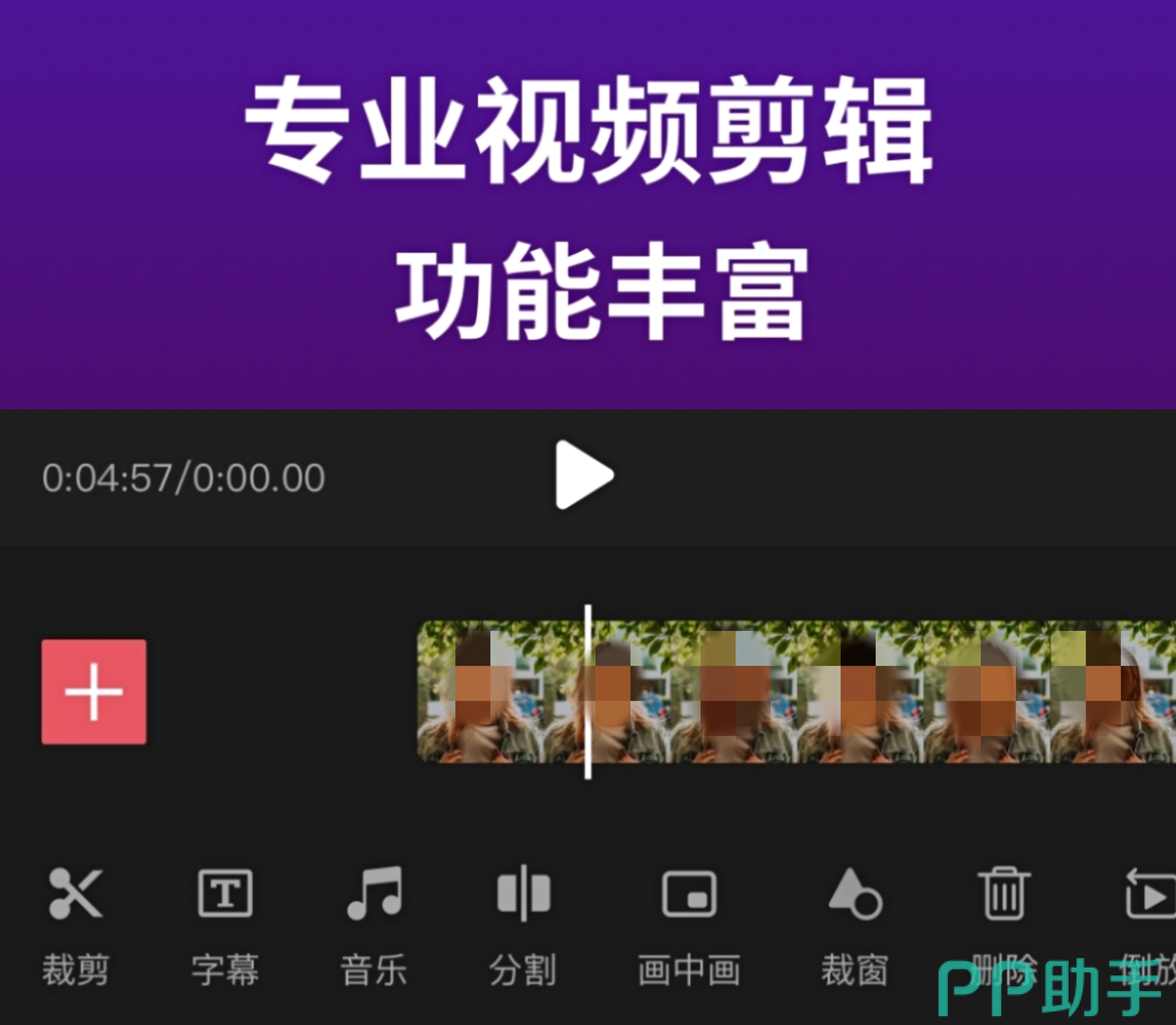 为用户提供专业好用的视频编辑、音乐剪辑功能,多样的工具如视频精剪、贴纸、字幕、画中画、美颜、马赛克、滤镜、美颜等。软件还有一大功能,那就是去水印,一键即可让视频中不需要的logo、文字等消失。