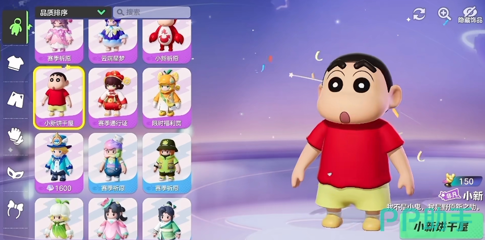 作为小新祈愿当中出现的特殊蜡笔小新皮肤,其独特的造型就会让人忍俊不禁。鲜红色的龙虾外壳造型以及出场动画小新的刻意捣怪,无不展示着其皮肤的特殊之处。穿上这件皮肤,保证你会成为竞争过程当中最靓的仔,想想一个龙虾跑在你的面前,怎能不让玩家们多看几眼呢。