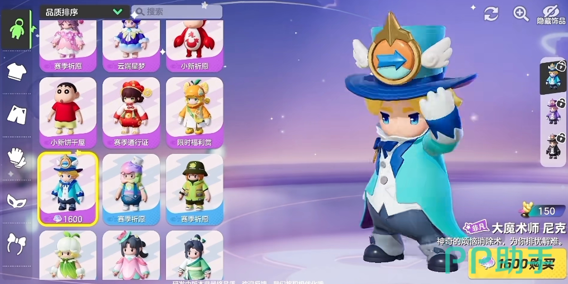 无论是出场动画以及整体的造型来看,都相当的帅气。从惊喜礼包中带着观众惊讶的目光蹦出,一身燕尾服,加上高礼帽的造型,也符合人物的一贯基调。原皮质量就已经很不错了,更别提还有黑色系的换装,十分推荐各位玩家们优先购买。