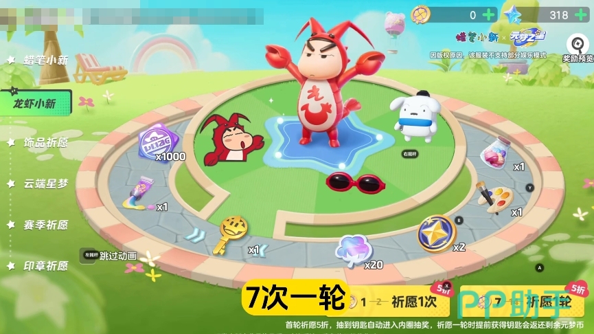 第二个小新皮肤是超级龙虾版本的小新,它需要通过转盘来抽去,转盘每抽七次为一轮,一轮之后的抽取价格会略微提升,不过运气好的话第一轮抽到费不了太多钱。