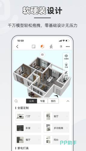 软件上手难度不高,导入户型图之后根据流程进行模拟的硬装和软装设计,多种视角自由切换,可以随时调整摄像头角度。将模型和样式拖拽到场景中就可以应用,值得我们尝试一下。