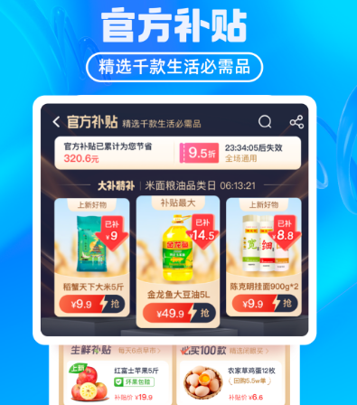 百亿补贴精选好物,涵盖丰富,品类从选品到上新,每个商品都是经过用户测评,高达98%好评才上架的,每天都会推出0元秒杀活动以及满减专区。