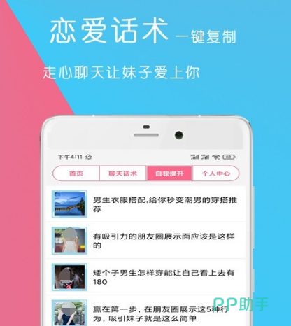 在这一个软件里面有很多有关于恋爱的话术,对于没有这方面经验,但想要脱单的人群来说,这是一个非常好的聊天软件。而且它全程不收取任何的费用,聊天话术一键复制,更有助于帮助单身的男人或者是女人找到心仪的另一半,话术还会每日更新,让自己渐渐的成为恋爱达人。