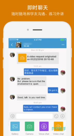 非常给力的一款即时聊天工具,我们可以通过在线匹配或者是输入ID来添加一些好友。这款软件的优点是自带有专业的翻译工具,就算看不懂也没有关系,而且还支持发送图文、视频文件或者是开启语音视频聊天,功能还是很全面的。