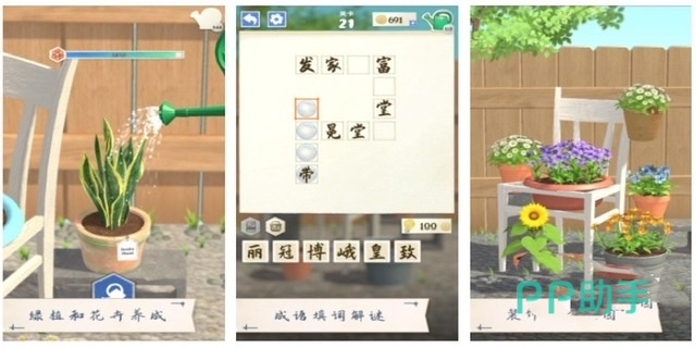 该游戏以经营好自家花园为中心,可以栽种各种花,用成语填字得到水滴灌溉花园。这款游戏尤其别出心裁,给人一种相当清新的感觉。相比于其他种花养成类的游戏,成语花园的优势在于能够帮助玩家在嬉笑怒骂中学习并巩固成语知识。