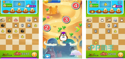 此款是以合成与养成相结合的消除手游,界面上会不断的出现种类不同的动物,每个动物都会占有一个小格,如果你没有在占满所有格子之前完成关卡任务就会导致失败。相同的动物三个就可以实现合成升级成其他的动物,例如小鸡可以变成小猫,小猫可以变成小狗,但是在合成的同时也要注意老鹰和小兔子等捣乱者。此外,你还能通过挑战多样化的谜题提高智力和思维哦。