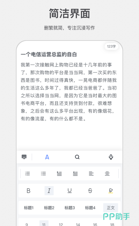 记录每一刻的创作灵感,编辑、作家和自媒体人士都可以使用,可以创作多种文体格式,多个设备可在同一时间登录,语音写作更节省时间,简单的操作就可以分享到其他的平台。