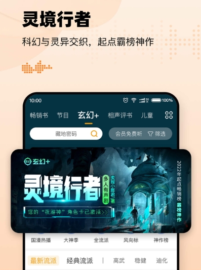 作为高品质的移动听书软件,在里面为大家汇聚了丰富的内容资源,同时还有一个优质且良好的阅读环境,同时还能为各位开放多种不同的分类专栏,小伙伴们到时候可自由的去进行选择,包括众多的文学作品大家也能找到哦。
