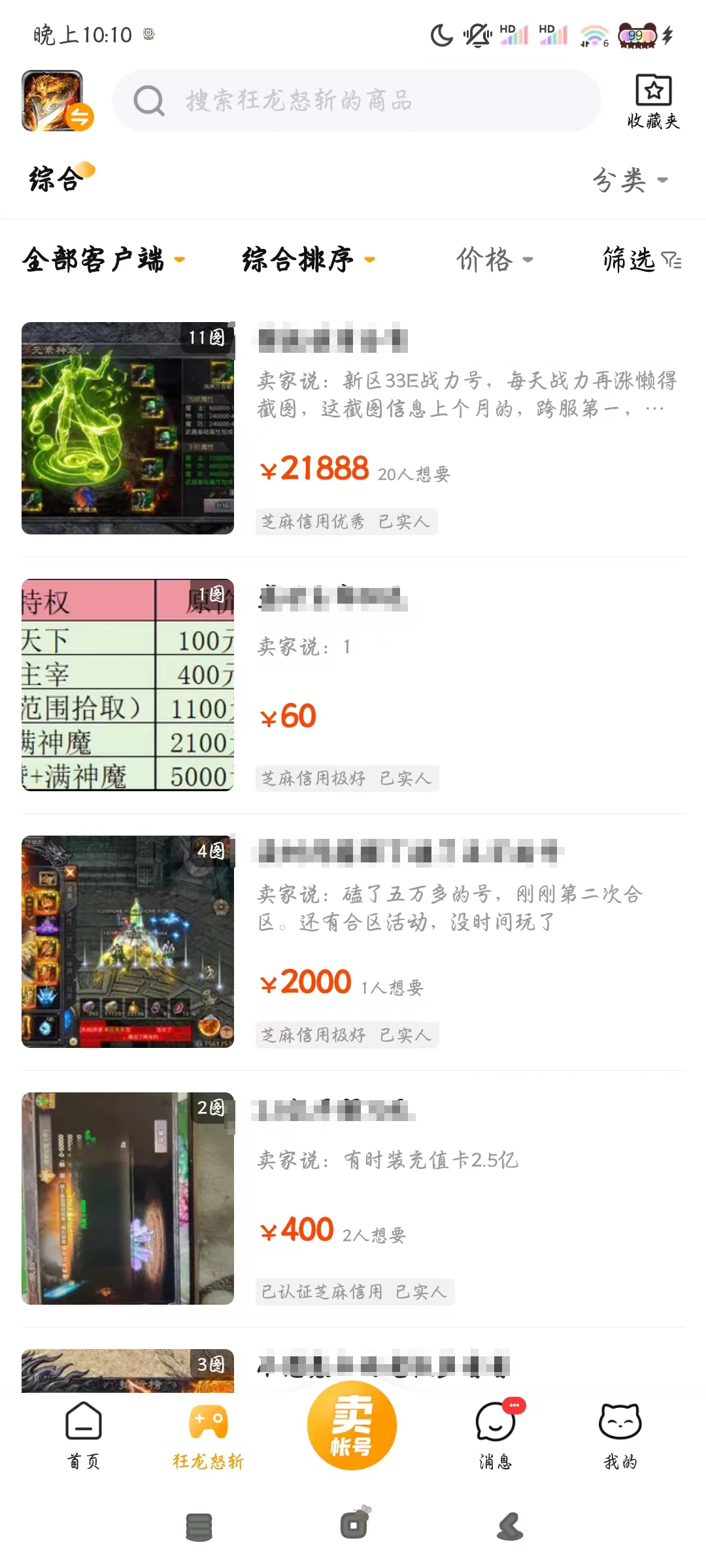 本期分享一个狂龙怒斩账号交易平台,因为狂龙怒斩是很多男性玩家喜欢的一款三职业并且攻速十分高的游戏,在里面小伙伴们的装备都是可以无限制产出的,只要肯打就能获得装备,但是很多小伙伴不想去肝,毕竟游戏到现在自己若是从新号开始玩的话,那么别人都是大佬了,所以想要购买一个成品号直接从大佬开始玩,由于这个游戏没有什么限制,所以账号的价格很多,几十块到上万不等。