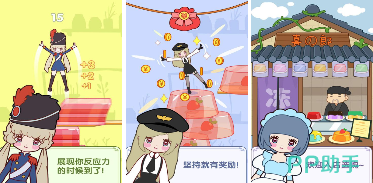 果冻女孩是款具有果冻元素的二次元画风冒险游戏,魔性的游戏氛围和节奏感很强的BGM让人停不下来,玩家只需要慢慢堆积果冻让女主角站得更高即可,轻松上手的玩法和可爱精致的画面感让人痴迷不已,花样繁多的角色形象和可爱的果冻让游戏更具观赏性,相信这款有关果冻的另类单机休闲游戏能让你满意。