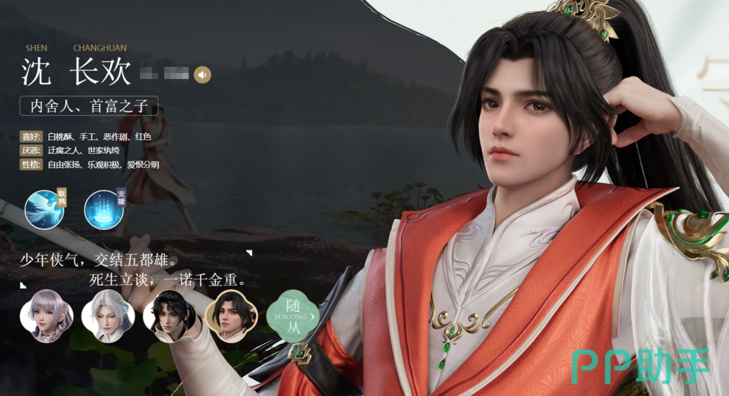 同时搭配上【秦止洛】,这个角色在游戏中的建模超级帅气,而且攻击方式也比较特别,在战斗中,非常擅长使用星驰长耀,这个技能在对敌人造成攻击伤害的时候,会给主控回复一些气血,搭配上支援技能【月华】,可以保护队友免受一次致命伤害!