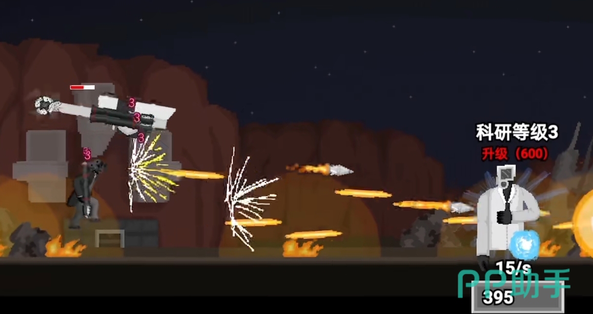 前期的话,敌人的第一波敌人攻击速度比较慢,我们可以快速攒钱,用于购买高于对面科技档次的角色。例如,可以使用火箭筒兵,加上己方的监控直升机,在后排进行输出,之后再派遣一些炮灰角色用于前期扛住,对面火箭筒的子弹扫射即可。