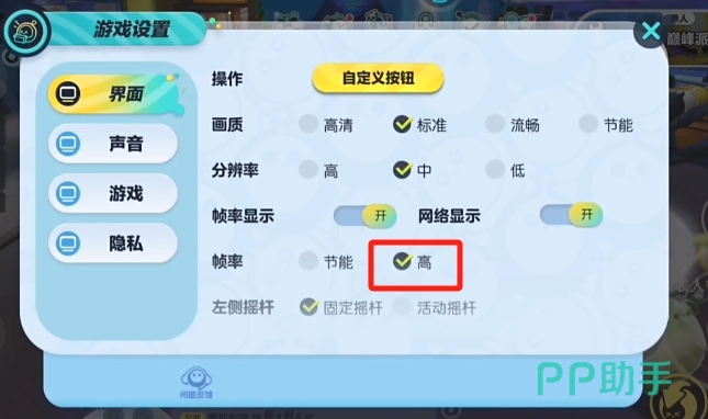 首先中期想要与其他玩家拉开差距,那么你的设置一定要调到最优,第一个需要设置的是帧率,一定要勾选“高”,因为高帧率下画面会更加流畅,操作的时候许多细节也得以更好的进行兼顾,相比较而言节能的帧率只有高帧的一半,所以实际操作的时候手感肯定是不如后者的。