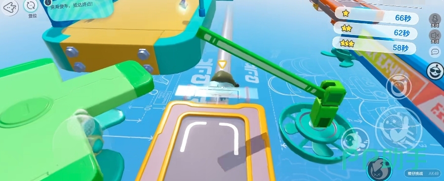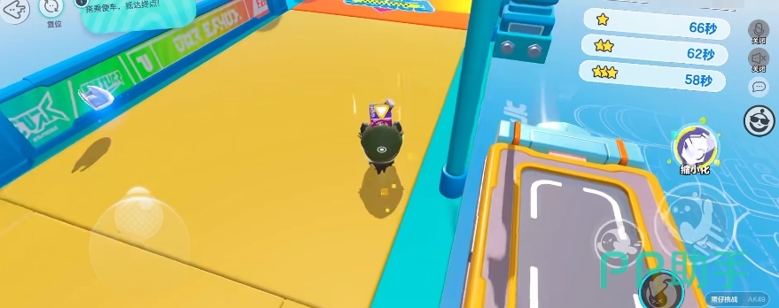 最后就是游戏中有时会有一些便车之类的道具,它可谓是先到先得,所以大家想要抢先上去的话也可以多练习一下自己的跳扑动作,虽然扑完会有一个小小的后摇,但跳扑本质上来看,其位移的距离确实要比单纯的跳跃更远,所以练好它之后抢一些道具会非常方便。